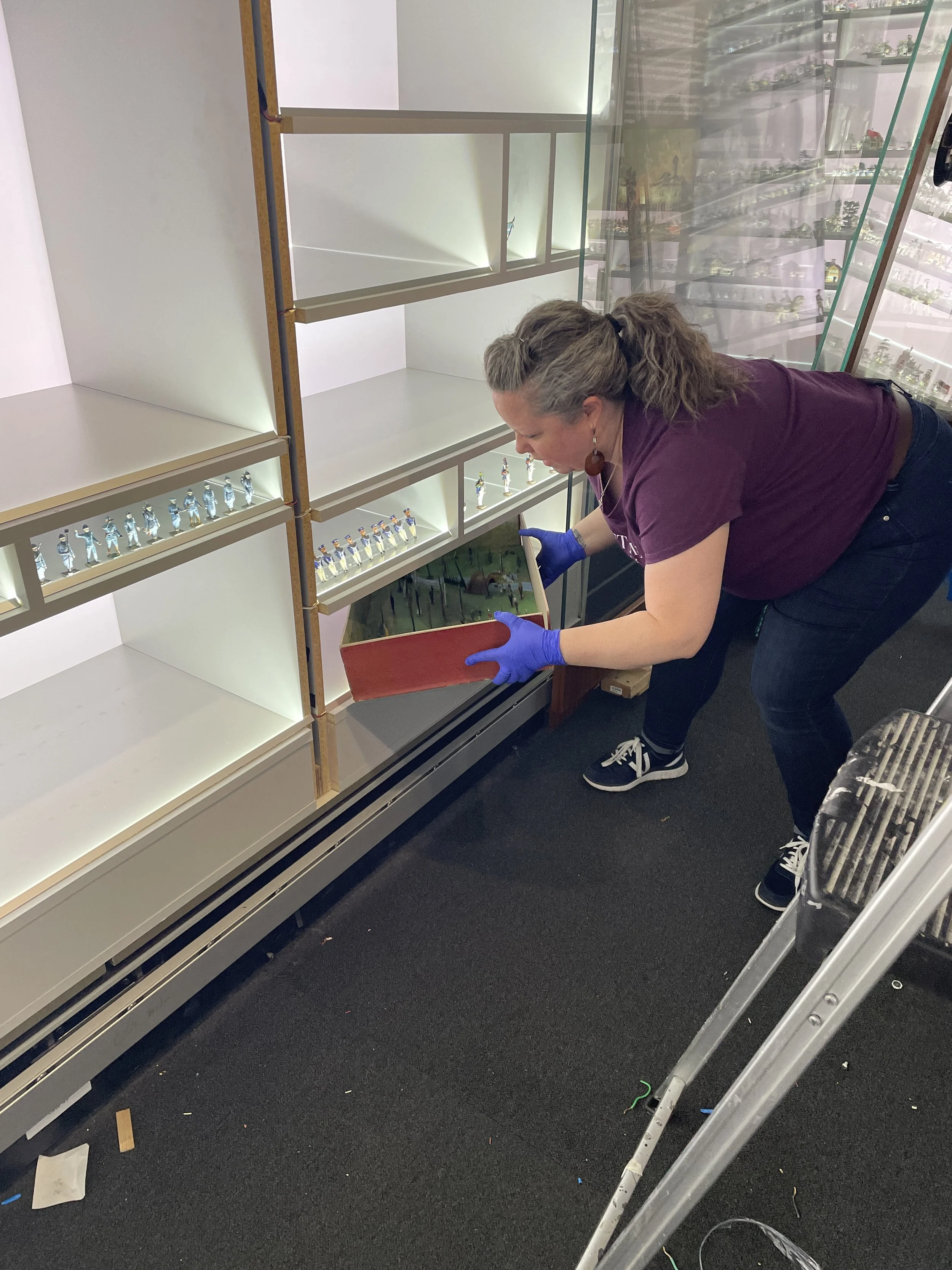 Last month, the Collections Team set aside two whole weeks to update the Stewart Gallery of Historic Miniatures - an exhibit full of thousands of toy soldiers! Necessary adjustments to our lighting and casework in this gallery led to a full-scale improvement to the display of each individual miniature figure.