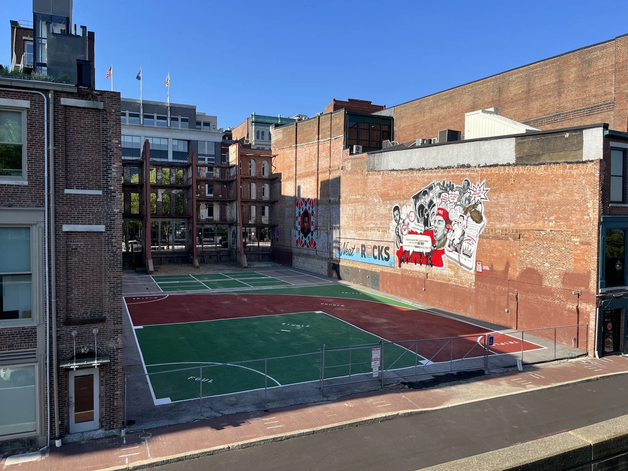 Need a place to play ball downtown? I think we may have the answer thanks to a partnership through Louisville Downtown Partnership, Metro Parks & Recreation, YMCA and Baird. The RePurposed site has been repurposed and you’re invited! Read the invitation from Louisville Downtown Partnership below.—Rachel Platt, Director of Community Engagement
