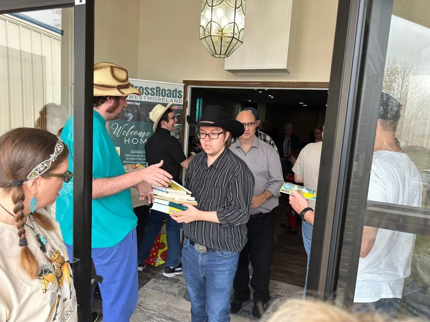 A Little Library is dedicated at Cross Roads Church in Westmoreland, Tennessee, November 22, 2025.