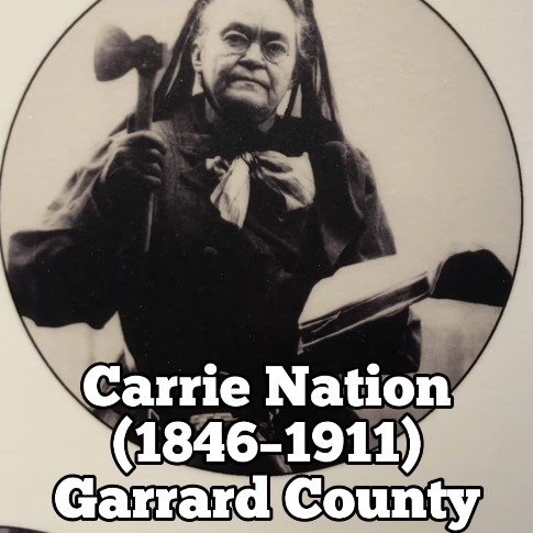 · Carrie Nation (1846–1911). Garrard County. Temperance radical who wrecked saloons with brick bats and hatchets.