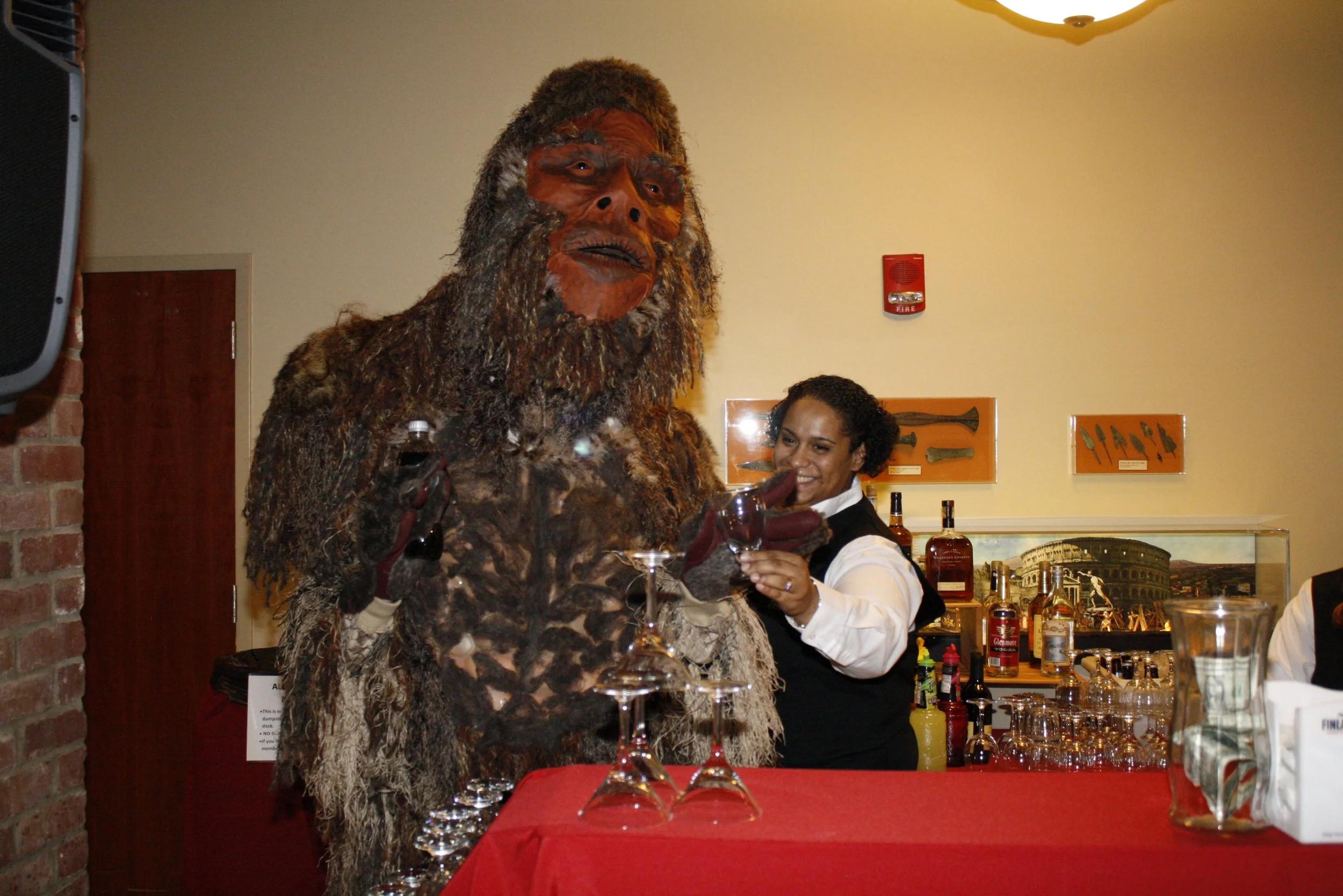 Yeti walked into a bar at the Frazier’s Mythic Creatures exhibition opening, May 10, 2013. The bartender said “Sir, you can’t come back here.” Yeti did! Credit: Frazier History Museum.