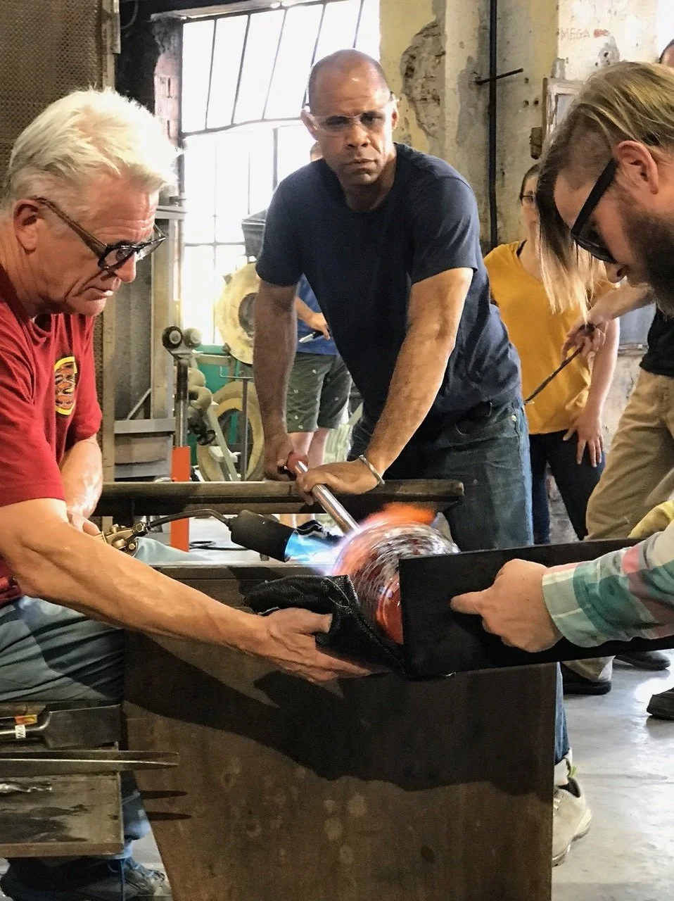 That video is part of a longer interview with Ché I conducted at the Frazier and the Cressman Center for Visual Arts, U of L’s glass blowing studio—which I helped build during my second semester of glass classes. Among other topics, Ché and I discussed my time at U of L, his mentor Stephen Rolfe Powell, and his experiences as a Black man in the art glass world. He even let me help with one of his glass pieces, marking my first time working with glass in about eight years.