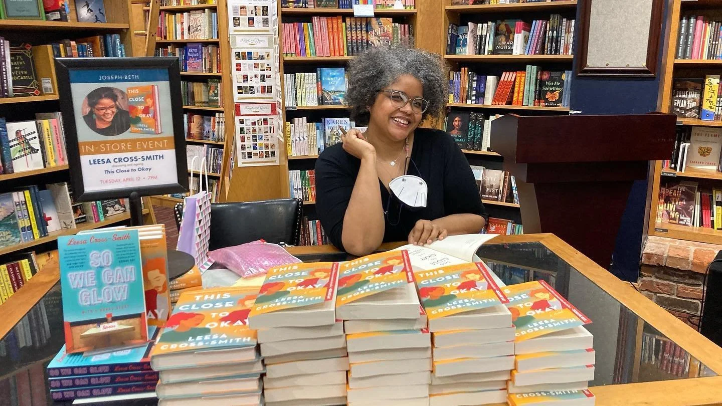 Leesa Cross-Smith signing paperback copies of her book This Close To Okay at Joseph-Beth Booksellers in Cincinnati, Ohio, April 12, 2022. Credit: Leesa Cross-Smith.