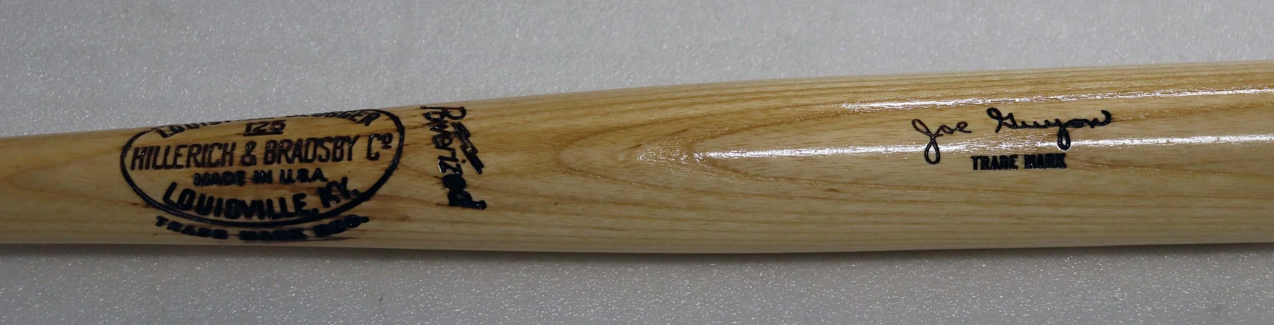 A Louisville Slugger baseball bat that bears Joe Guyon’s signature.
